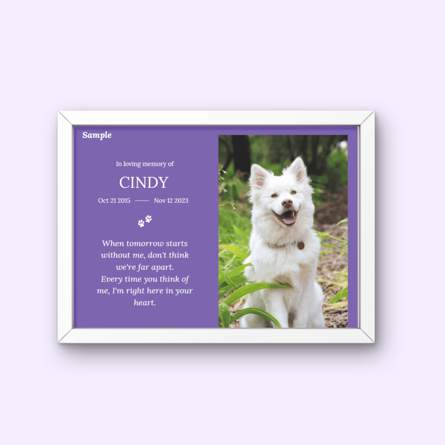 Can be framed and displayed as part of your pet memorial shrine or as a wall or desk art.